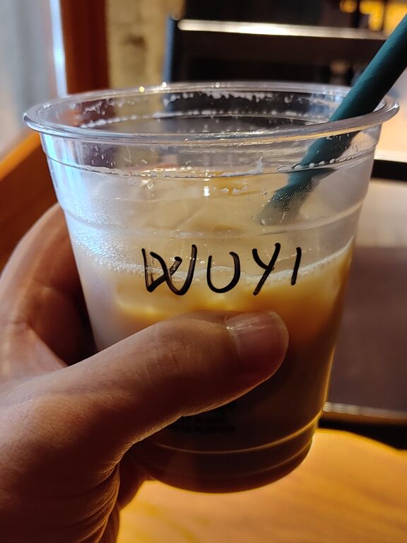 こちらはスタバで買ったカフェラテ。海外のスタバでは注文時に名前を言って、受け渡しカウンターで名前を呼ばれて取りに行くというシステムです。