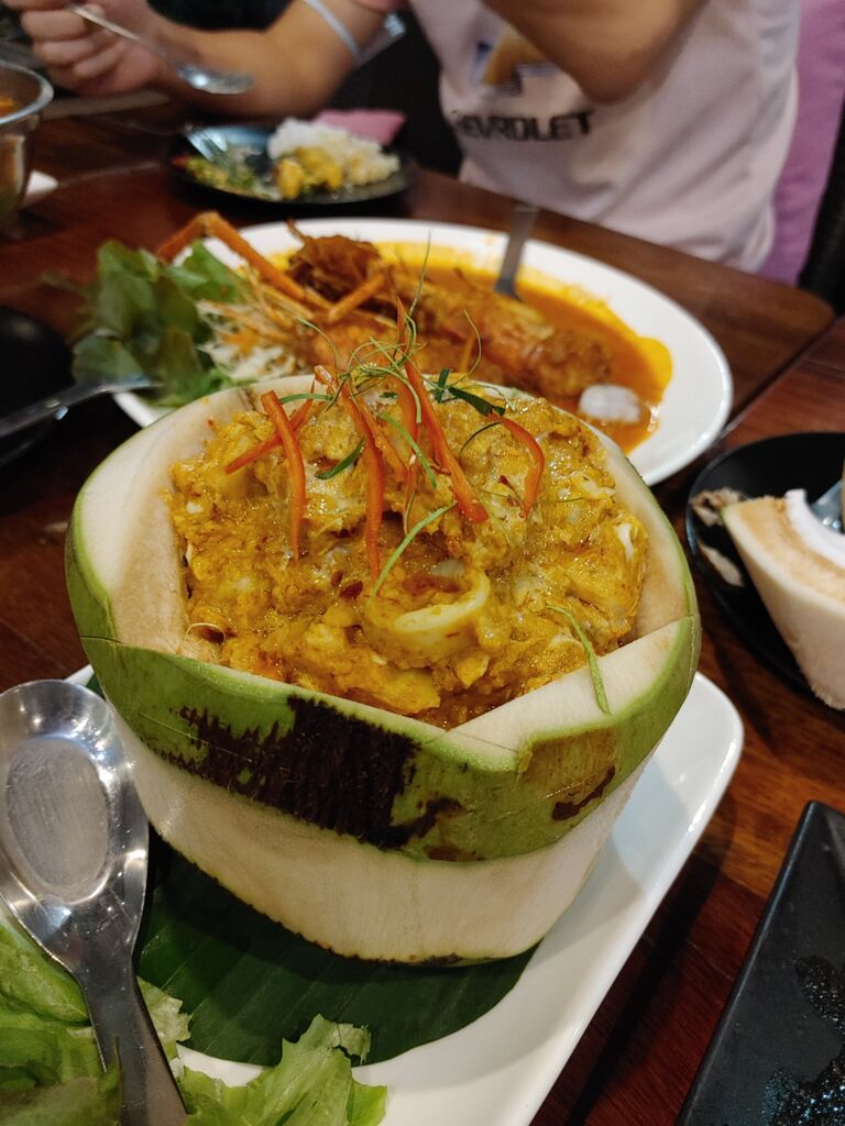 ココナッツに料理を盛り付ける斬新な発想。うまい!