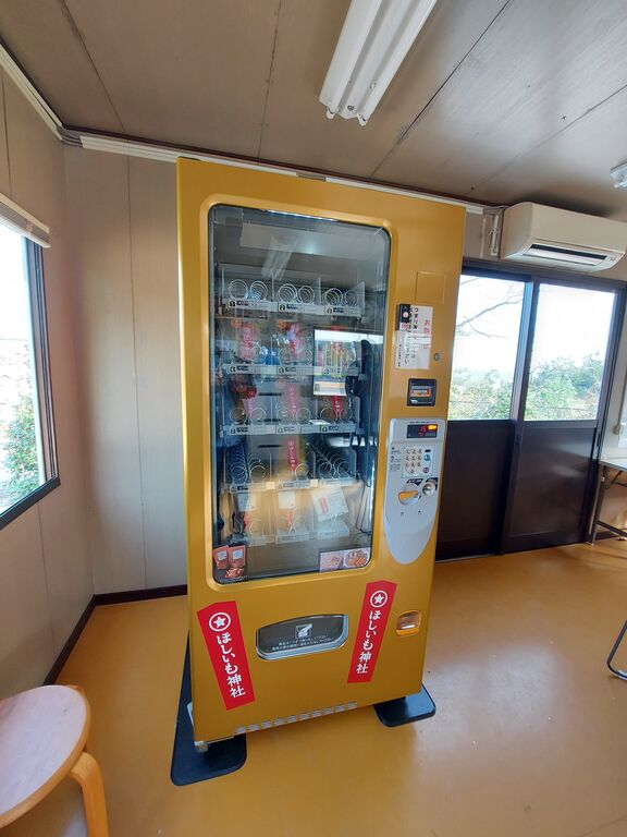 神社の隣には休憩所があり、ほしいも自販機まで置いてありました。