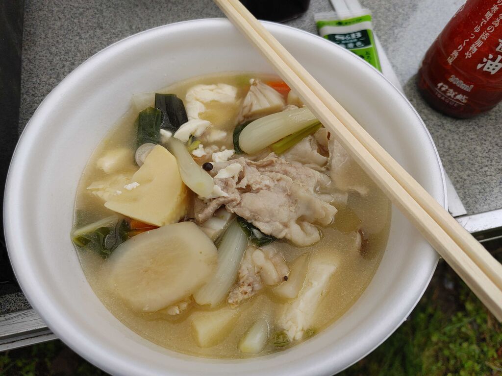 テキトーにざく切りにして豚汁を作りました、うまい!
